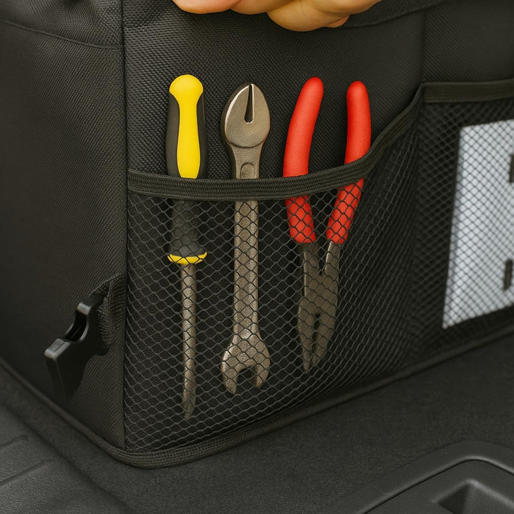 No carro: porta-malas sempre organizado, objetos firmes e seguros